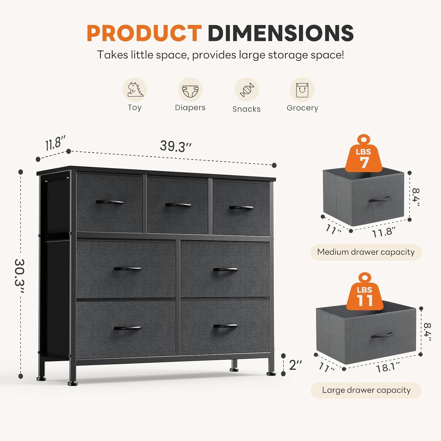 - Superior Build: Features a steel frame dresser for lasting durability, a wood top organizer that supports up to 66 lbs (doubles as a TV stand), and a comprehensive anti-tip kit for ultimate safety. According to Sweetcrispy, the dresser has passed rigorous stability and load tests.
